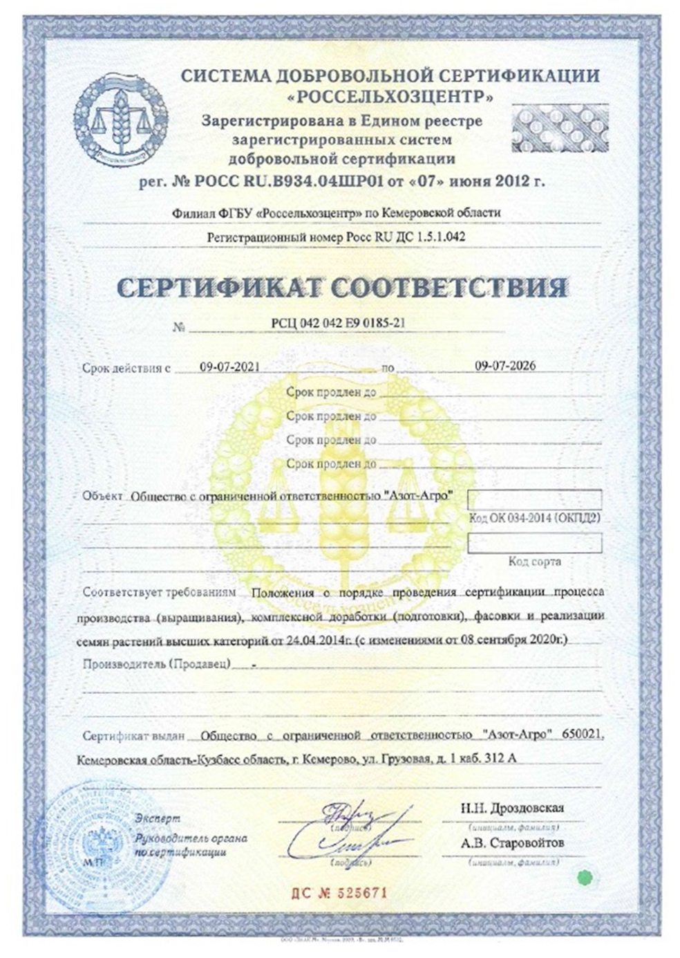9 июля Состоялась комиссия филиала ФГБУ «Россельхозцентра» Кемеровской области по прохождению добровольной сертификации ООО «АзотАгро», результатом которой стало включение предприятия в реестр семеноводческих хозяйств.